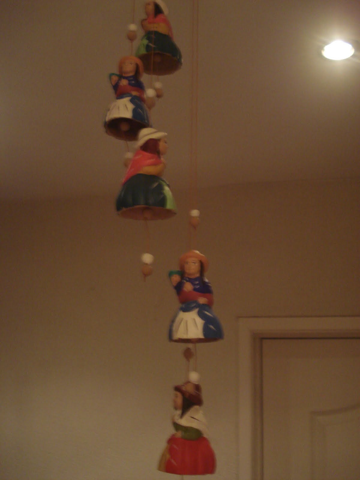 Uit Ecuador... heb ik een mobiel gehad met vrouwtjes eraan. Het hangt in de keuken, heel gezellig.
